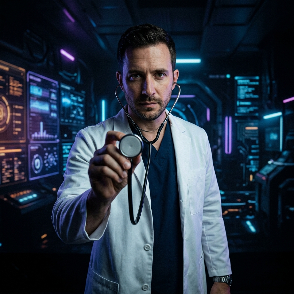 Click the doctor on any page. He scans videos, photos, memes, and articles — and tells you if they're real or AI-generated in seconds.